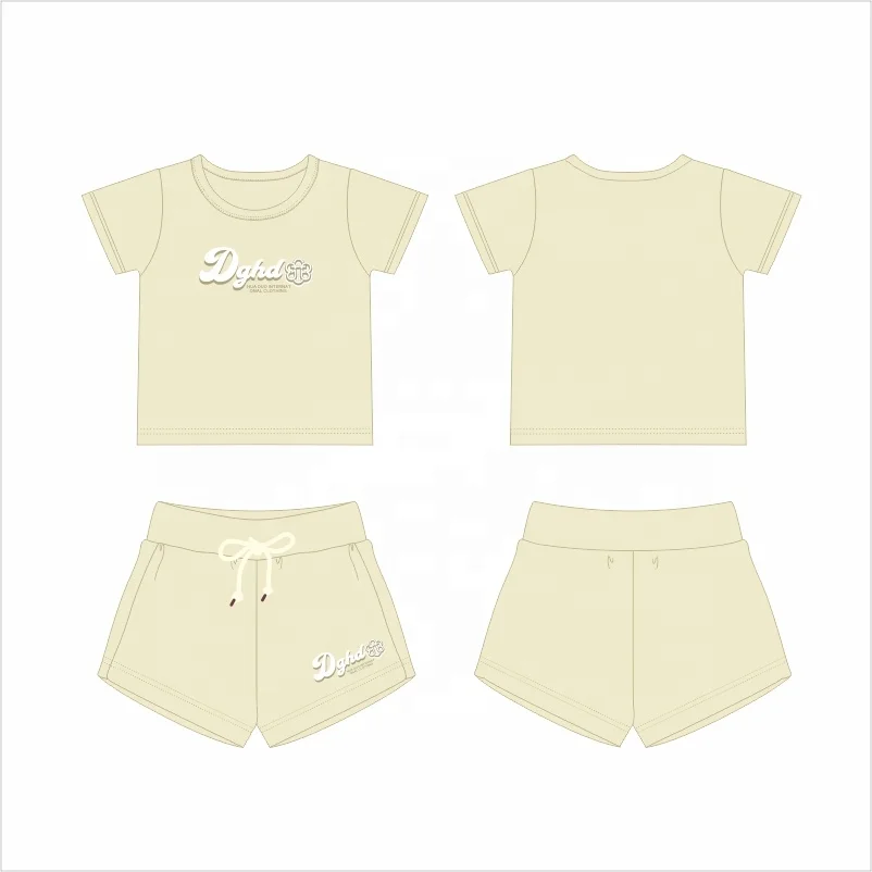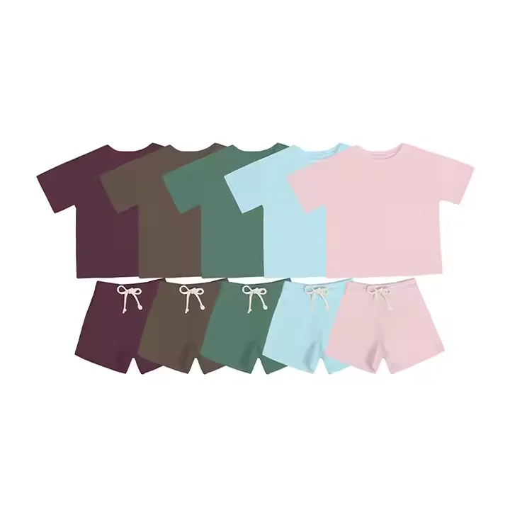 OEM Clothing Manufacturing Short Sleeve T Shirt Shorts Two Piece Set Kids Children Summer Cotton Clothes